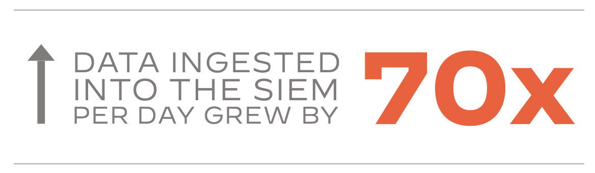 Das Team hatte mit einem veralteten SIEM-System zu kämpfen, das eine ganze Reihe an Herausforderungen mit sich brachte. Zum einen konnte nur eine geringe Menge an Daten in das System eingespeist werden, zum anderen produzierte es ein Übermaß an False Positives und nur sehr wenige qualitativ verwertbare Erkenntnisse. Die mit der Einbindung weiterer Datenquellen verbundenen Kosten waren unerschwinglich.